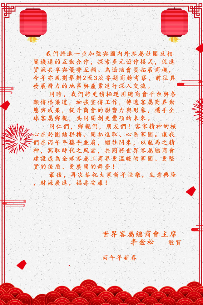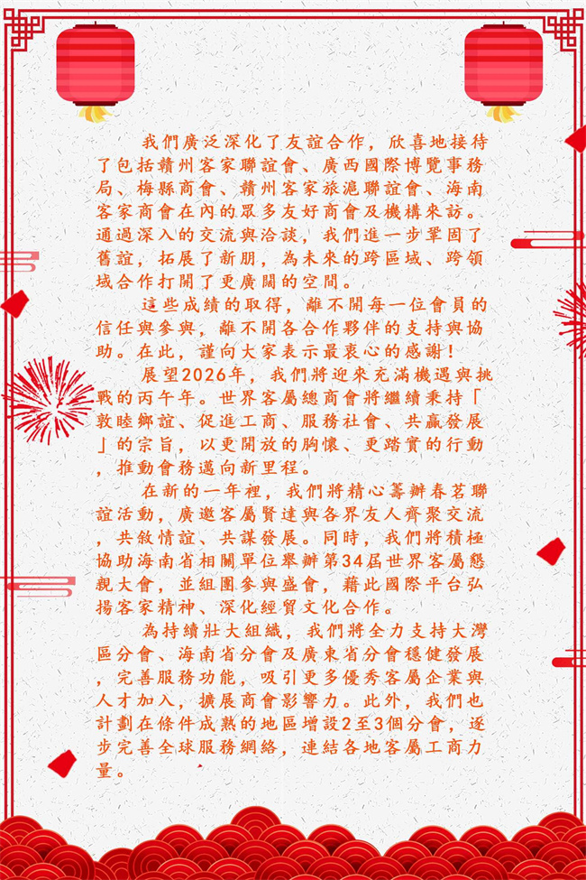 版權所有 : 世界客屬總商會 地址:香港灣仔皇后大道東213號胡忠大廈35樓3518&3519室 電話 : (852) 2895 3639 Email:whk@whkba.org Facebook:www.facebook.com/whkba