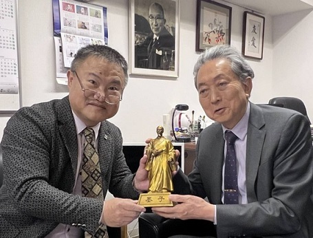 當日有近百人參加。廖會長更贈送墨子像和诗作给日本前首相鸠山由纪夫: