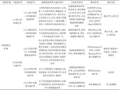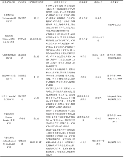 表5 印度尼西亚成矿区带及其成矿特征