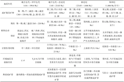表7 印度尼西亚主要成矿期次与构造运动、岩浆作用关系一览